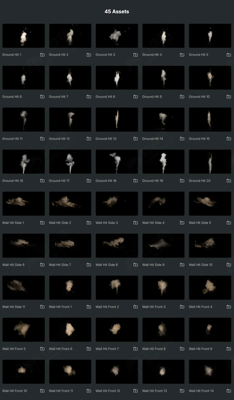 这是一套高质量的4K视频素材,包含45个子弹击中目标时混凝土灰尘飞扬的动画效果。素材提供45种真实灰尘和混凝土元素,用于模拟子弹击中效果,包含3种不同角度的拍摄。这些素材提供4K分辨率,背景为黑色且未抠像,适合用于各种视频编辑项目。