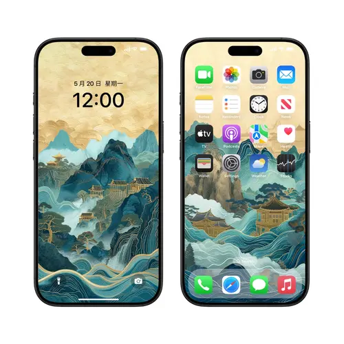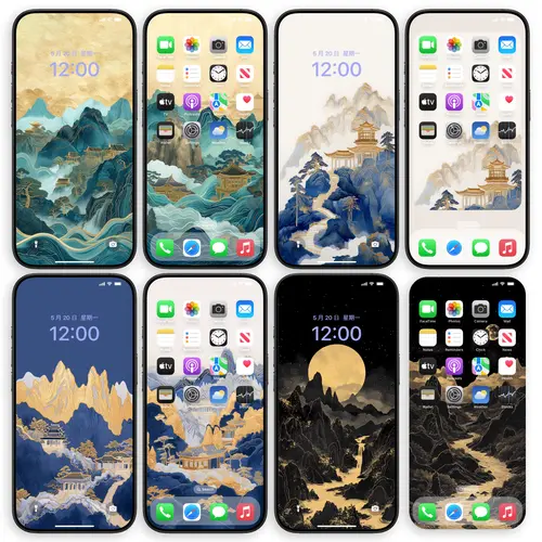 ✨【鎏金山海|青雉国风山水壁纸合集】✨17张4K高清鎏金山海图,7套共16张!涵盖电脑、平板、iPad、手机全适配~水墨...