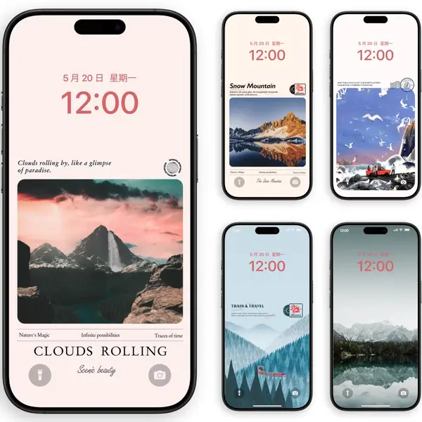 ✨粉色云端邂逅雪山晚霞☁️🌅旅行路上的诗意瞬间!墨池湖镜倒影绝美,INS极简风高级氛围感拉满📸5套11张,4K超清分辨率...