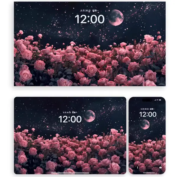 🌙✨【粉色月光玫瑰壁纸✨】🌹4张4K超清壁纸,粉玫瑰邂逅月光,美到窒息!📱💻适配手机/平板/电脑,苹果安卓通用~ 🌙...