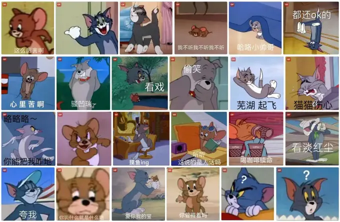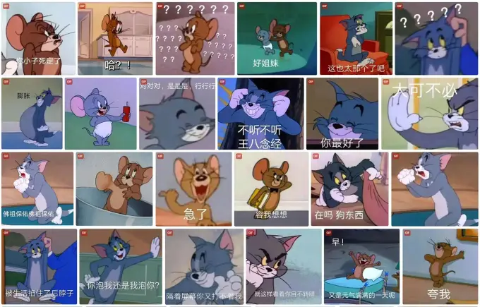 这期给大家整理了一套超全的《猫和老鼠》表情包合集,共包含 147 张动态 GIF 与 167 张静态表情包,无论是斗...