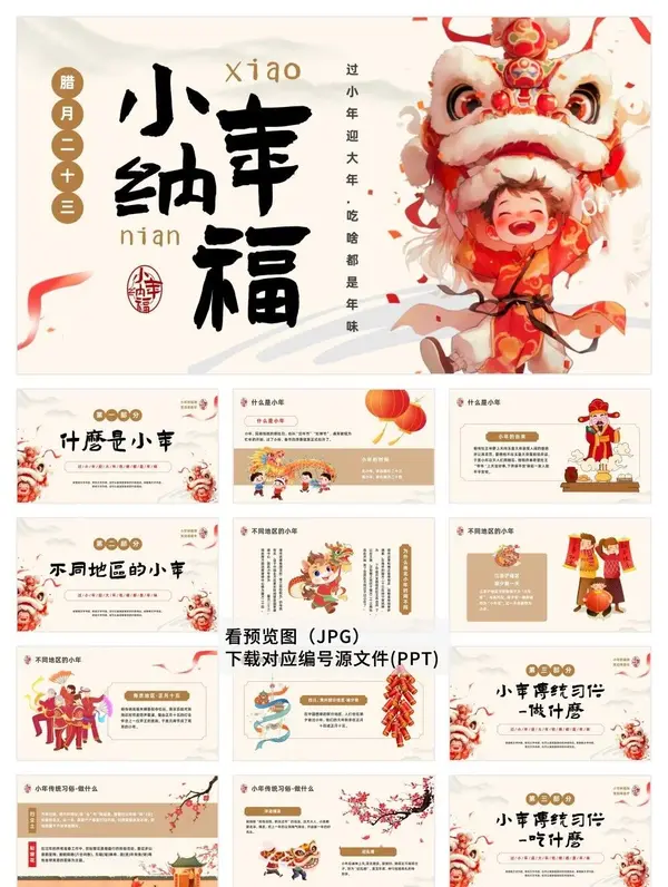 🎉喜迎小年!🔥30套精美习俗PPT模板免费送!✨涵盖传统讲解、节日活动等主题,风格多样,一键下载,轻松传播年俗文化~📚分...