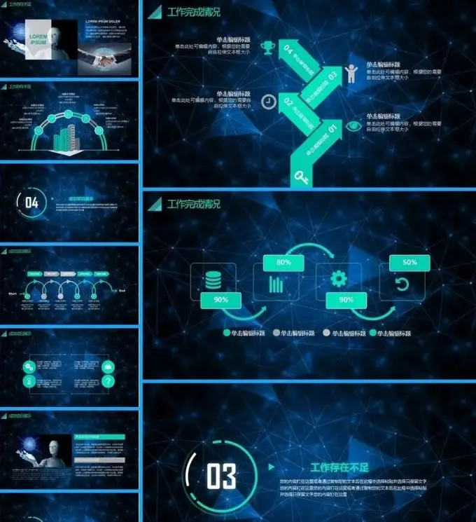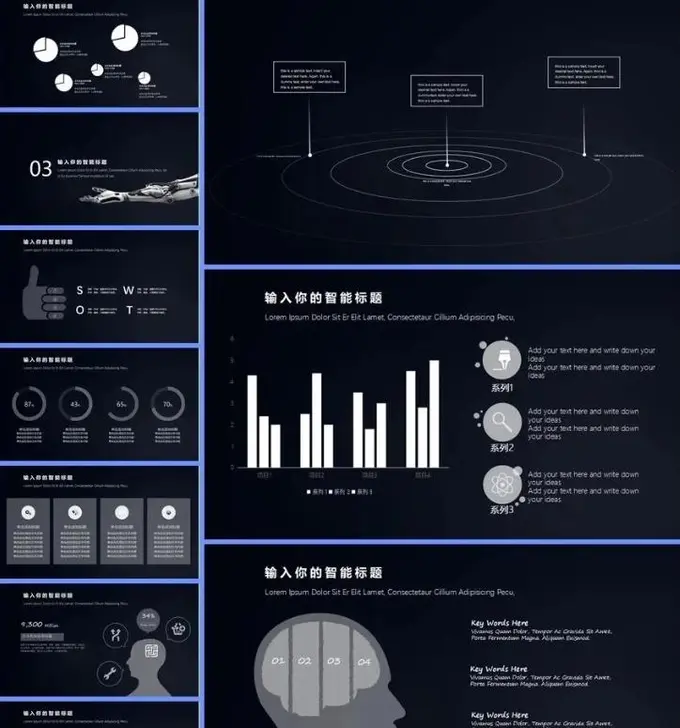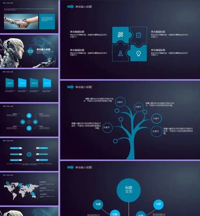 精选147套人工智能主题PPT模板,蓝色科技风格设计,机器人元素点缀,适合各类科技主题演示。模板涵盖人工智能科普、科技产...