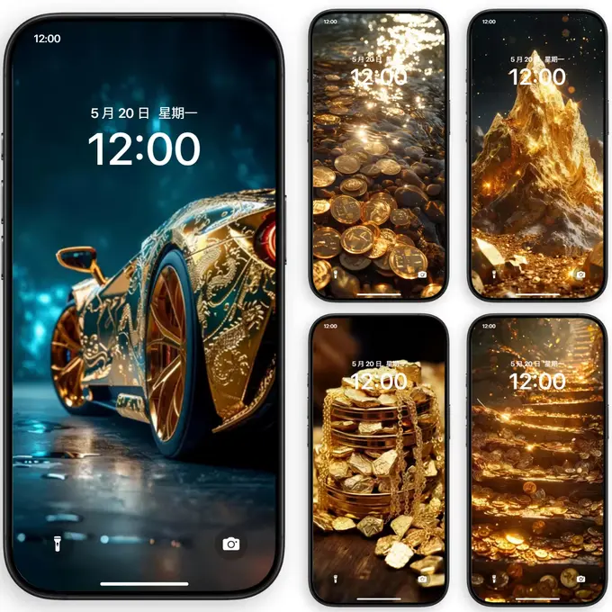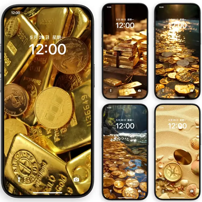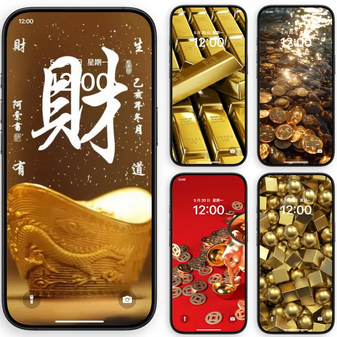 ✨金运加持,换上这组高清4K黄金富贵壁纸,开启每日好财运!🍎金元宝、祥云、招财猫元素齐聚,寓意财源滚滚,事业高升。适配苹...