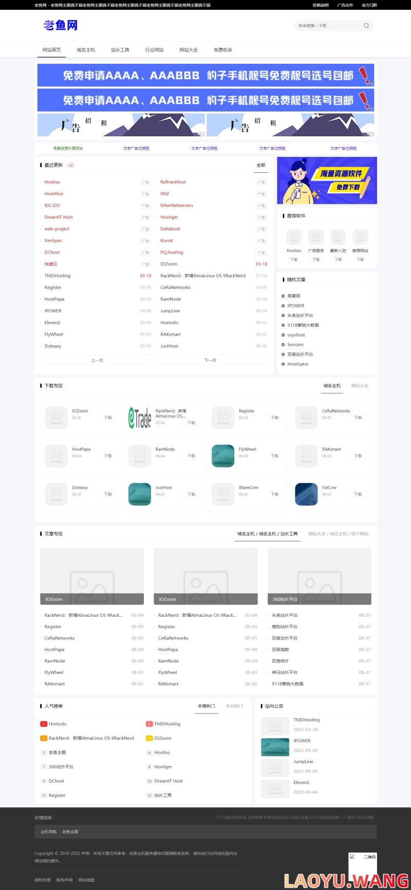 主题特点: 自适应纯文字风格设计,适合做线报信息,资源分享下载站点!