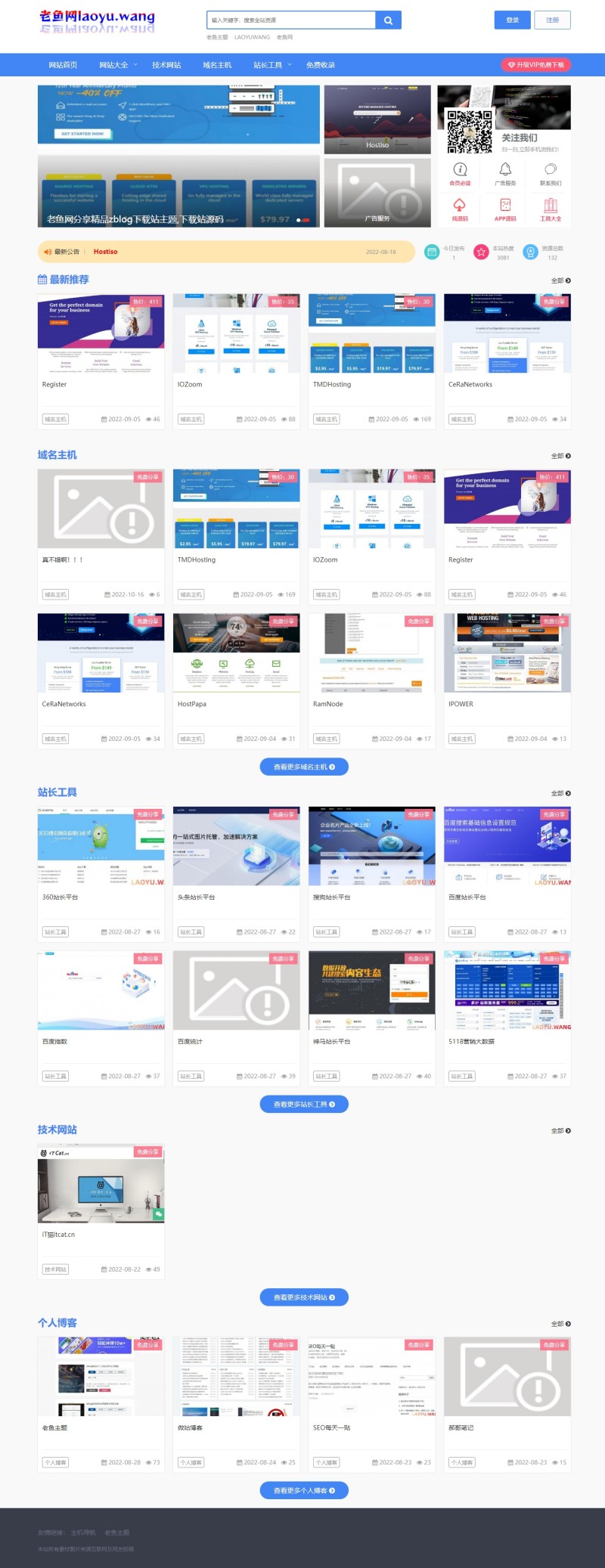 主题特点: 响应式简洁大气资源站主题,适合做各类资源分享网站!