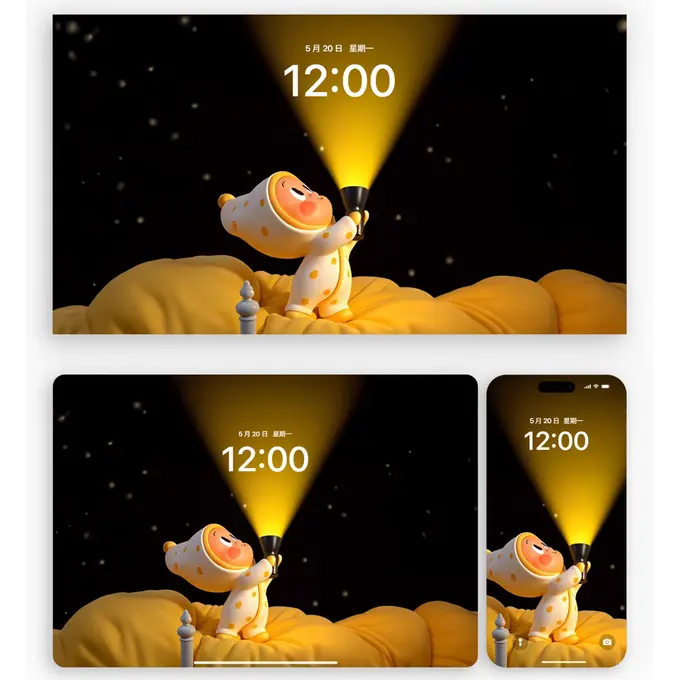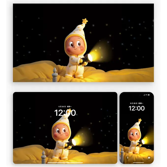 ✨泡泡玛特星星人来啦!🌟「手电筒照亮时间」主题4K高清壁纸,2套共9张!📱💻🖥️⌚适配电脑、手机、平板、手表,萌趣又治愈,氛围感拉满!✨速存收藏~