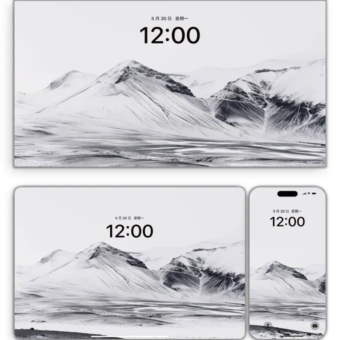 ⛰️**风景黑白山脉|9K极简黑白山脉壁纸上线!**🖤高级感拉满的黑白山脉系列,用光影勾勒自然的力量!📷1套4张,精准适配手机、平板、电脑、折叠屏,连Apple Watch都有专属表盘!🖤4张9K高清图,每一眼都像置身旷野,沉默却震撼。✨收藏这一套,桌面瞬间高级感爆棚!📸